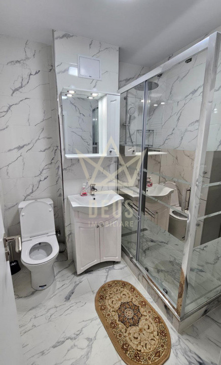 Dispune de bucatarie cu masina de spalat vase incoroporata, baterie cu cap termostatat la cabina de dus,vas WC cu functie bideu, cu temperatura apei reglabila (la baia mare),plita mixta inductie si gaz, internet disponibil (WiFi si LAN) si televiziune. Confortul termic este oferit prin centrala termica proprie, locuinta este luminoasa,locuinta cu izolatie termica excelenta BCA + polistiren,baile au ventilator montat in perete pentru aerisire/uscare rapida.Separat loc de parcare exterior la pretul de 50 euro/luna.